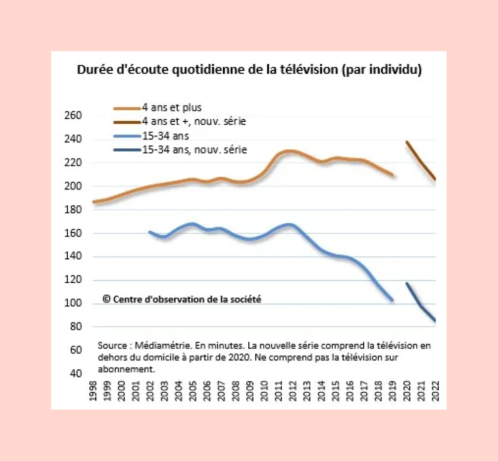 Si l’on prend un peu de recul, on constate que la baisse de l’usage télé commence au début des années 2010, mais elle s’est accélérée ces deux dernières années.