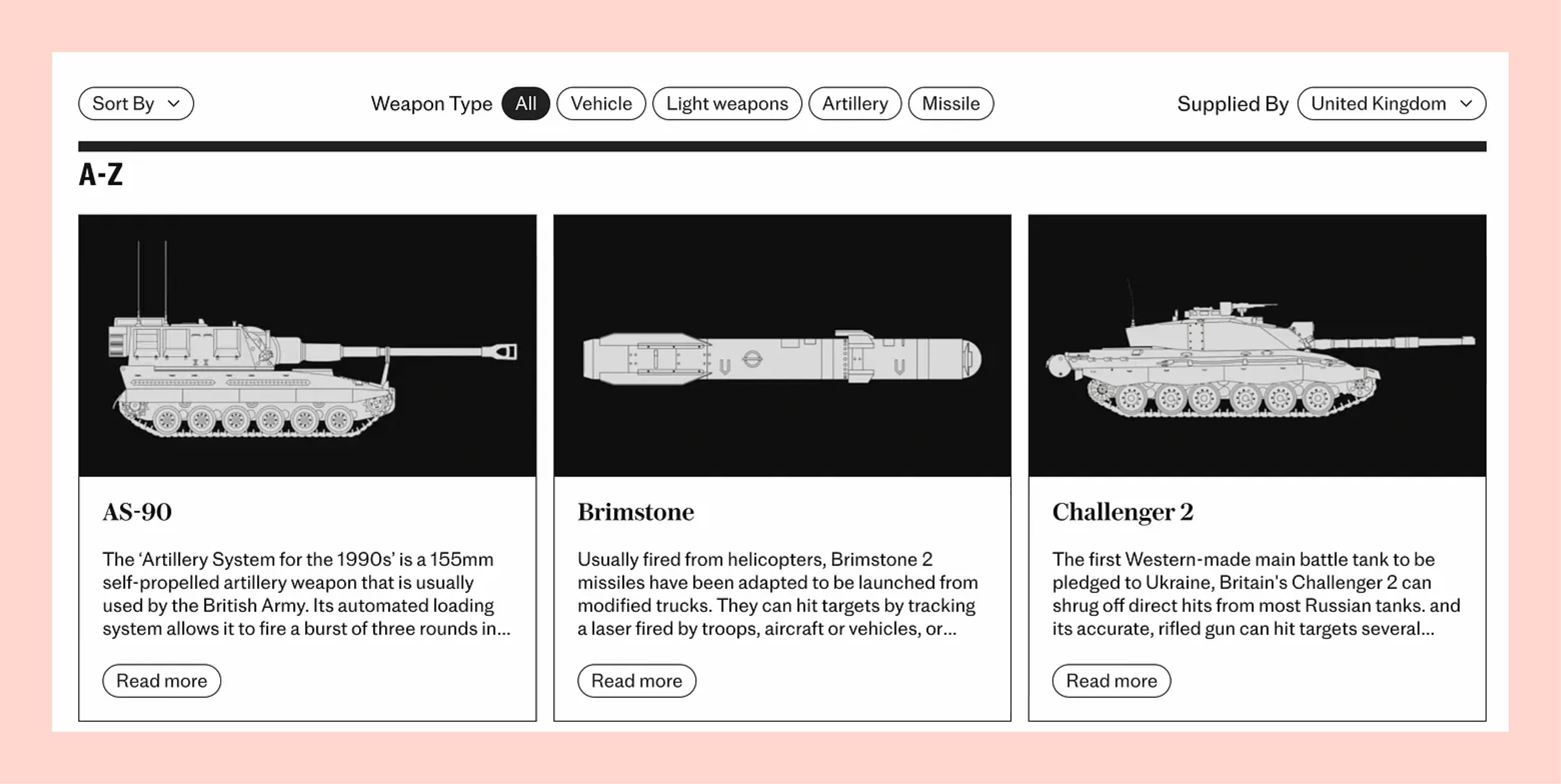 Aujourd’hui on vous parle d’une initiative du quotidien britannique The Daily Telegraph qui a créé un répertoire de l’armement utilisé en Ukraine (payant) :